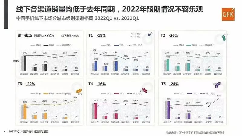 (2022年Q1中国手机线下市场各渠道销量情况 图源:GFK)