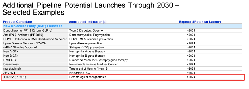 除了吉利德外,大药厂辉瑞对SIRPα 融合蛋白TTI-622也是充满期待。在JPM大会上,其对外界展示的面向未来的管线布局中,TTI-622是重要一员。