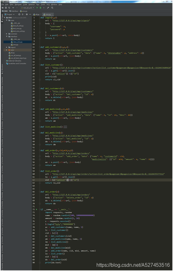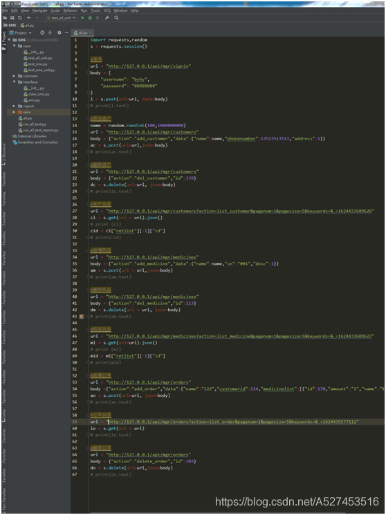 1、先整理好一个完整流程的接口,这里需要导入requests模块,因为涉及到新建需要随机命名的,所以还增加了random模块