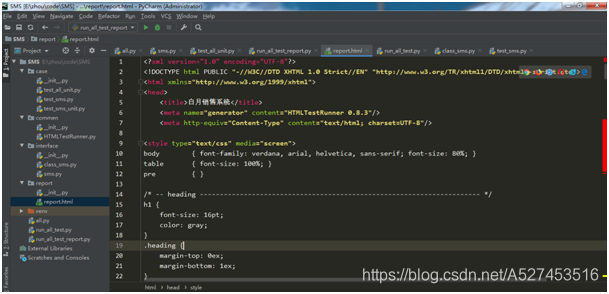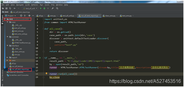 6、新建commen文件夹(公用文件夹,我把HTMLTestRunner文件发在这里了,这个文件是生成html文件代码,在网上可以下载)和report文件夹(放自动化测试报告的)