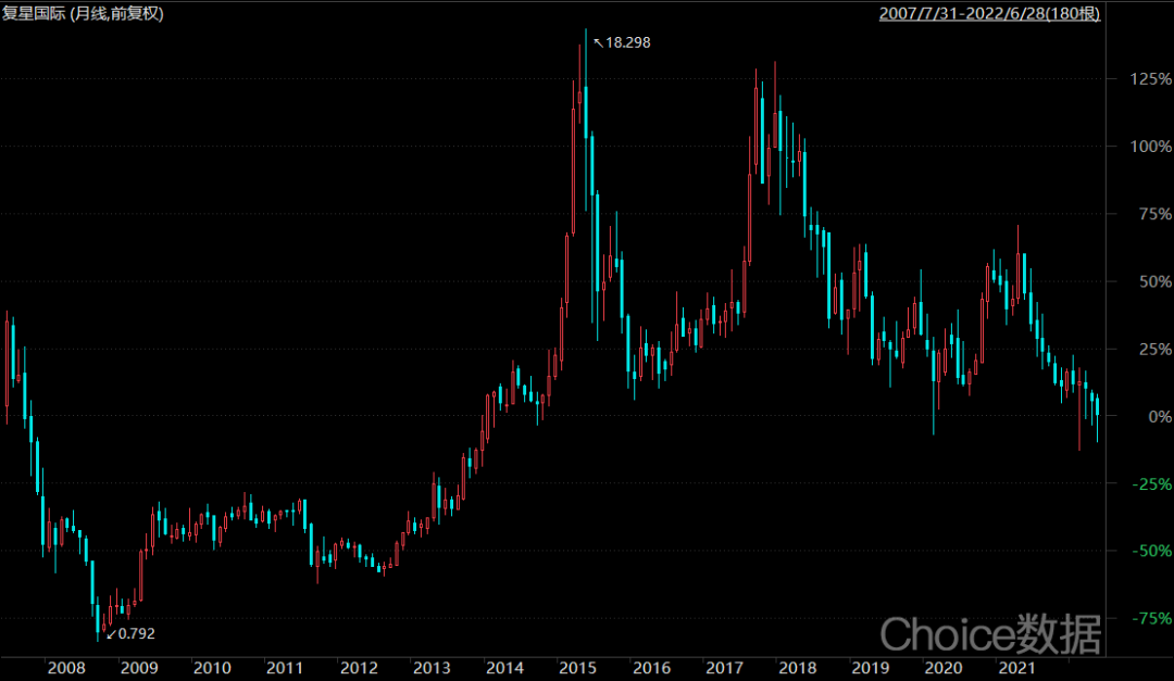 2007年复星国际港股上市,发行市值576港元,兜兜转转16年之久,目前复星国际最新市值600亿港元。日益膨胀的复星资产版图,似乎并没有受到投资者的青睐。