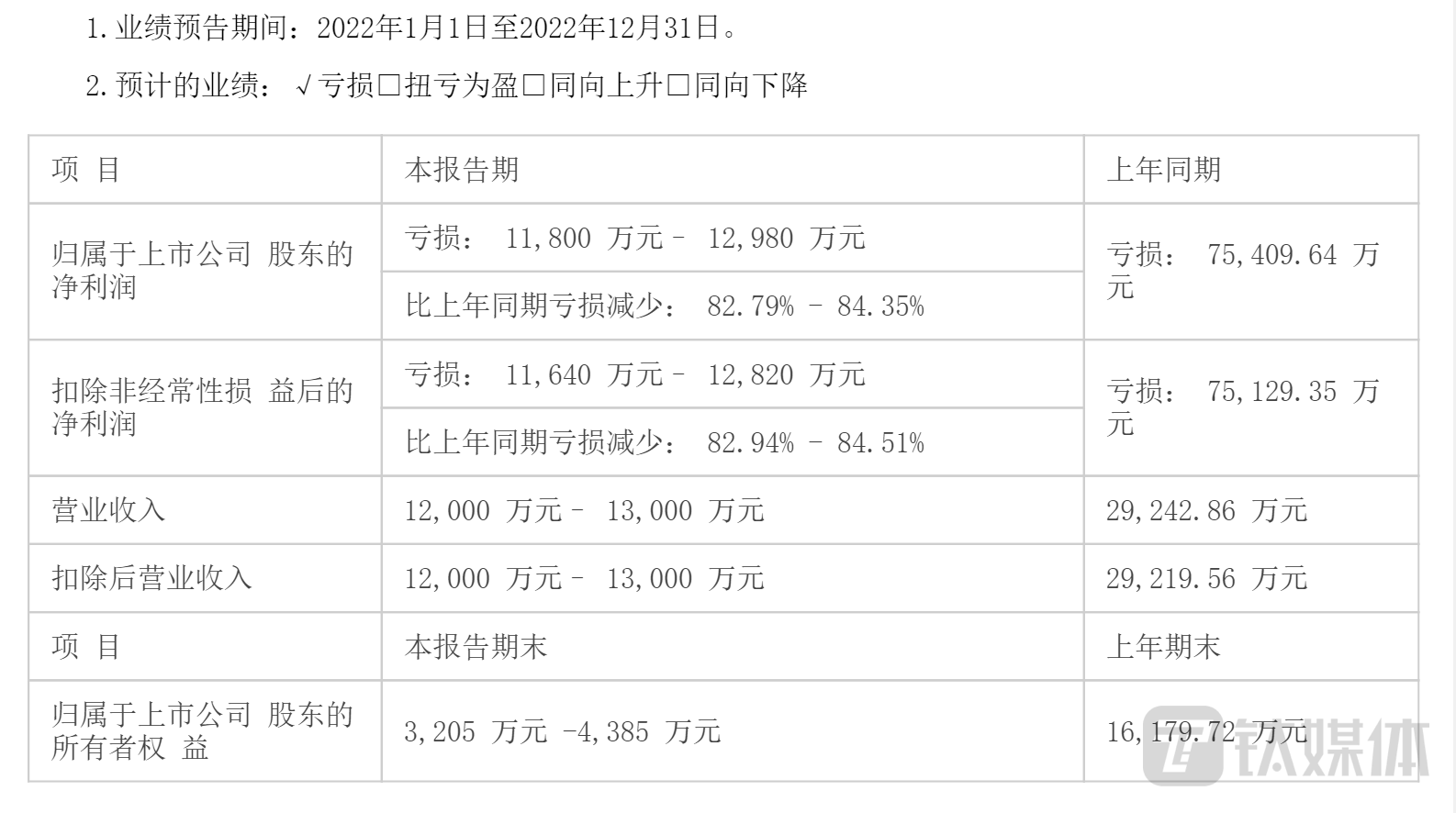 虽然说汉邦高科已经拥有“数字水印”相关技术储备,但是公司的基本面很差。财务报告显示,公司自2019年开始已连续亏损三年,预计2022年度仍为亏损。