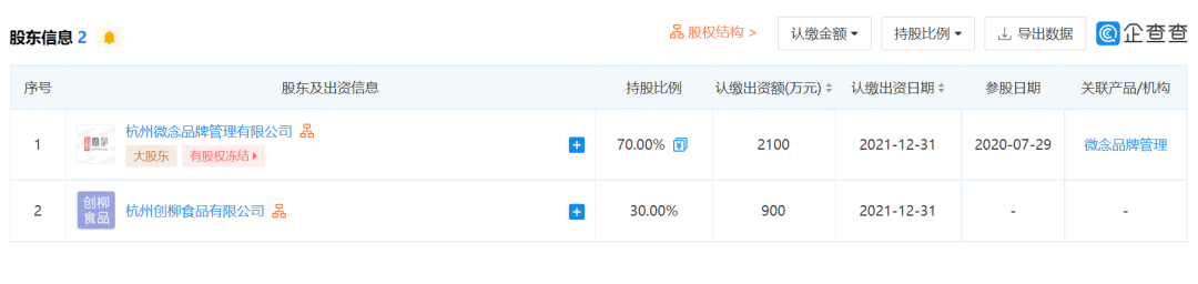 企查查显示,李子柒螺蛳粉厂家的股东为微念