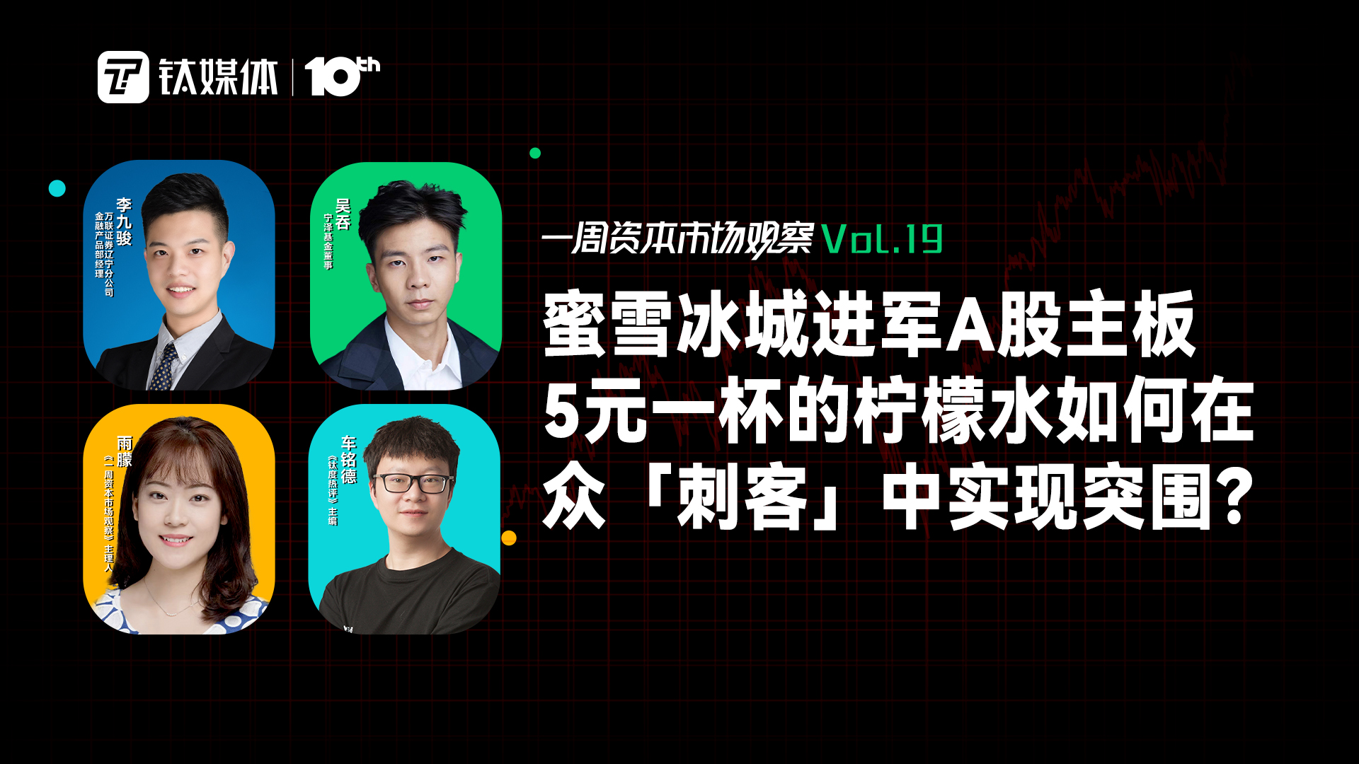 本期节目,《一周资本市场观察》主理人雨朦对话万联证券股份有限公司辽宁分公司金融产品部经理李九骏(执业登记编号:S0270619110001),《钛度热评》主编车铭德与宁泽基金董事吴吞,分享了如何看待我国新茶饮赛道的发展空间,新茶饮赛道目前的竞争格局如何,直营模式和加盟模式对于茶饮品牌发展的影响,“前置仓”模式对茶饮品牌的借鉴意义,蜜雪冰城为何要进军竞争激烈的瓶装水赛道,新《博彩法》对澳门博彩业的影响,首套个人住房公积金贷款利率下调释放哪些信号,如何看待海天味业陷入酱油添加剂“双标”争议,如何看待咖啡品牌Tims上市表现等话题。