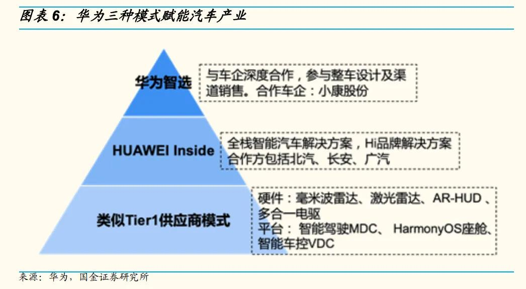 (华为赋能汽车产业的三种模式 图源:国金证券)