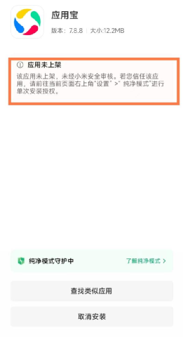 即便在微信里下载了应用宝,安装时也会有“更温馨”的提示。