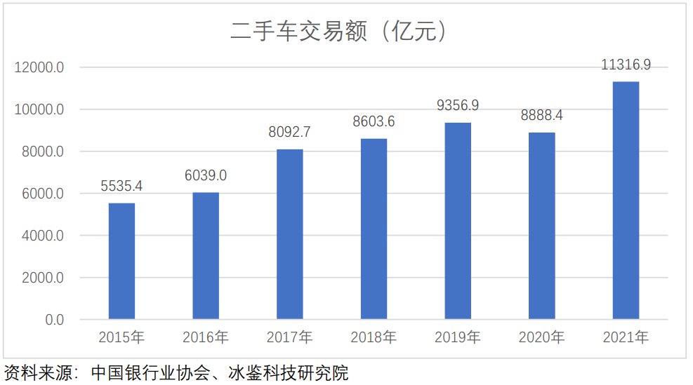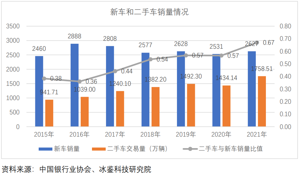 中国新车销量在2016年达到2888万辆峰值后,逐渐进入平台期,甚至略有下降。与此同时,二手车销量不断突破新高,随着二手车交易地域壁垒的逐渐破除,2021年销量达到1758.51万辆,是五年前的1.7倍。