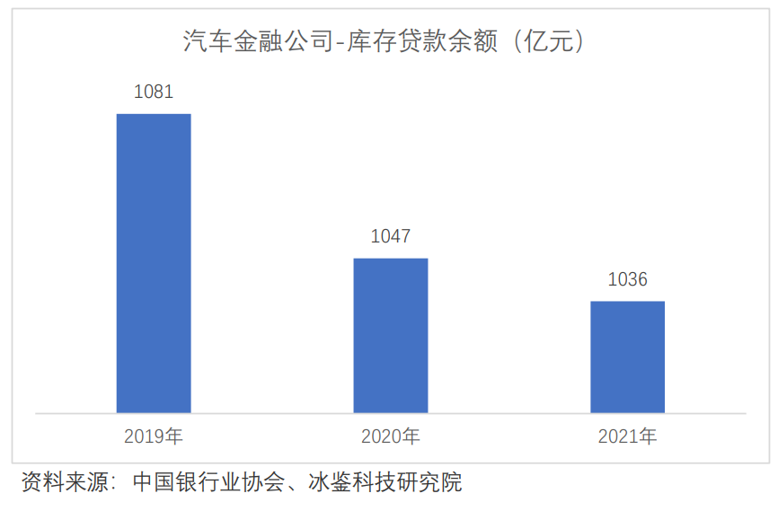 经销商是汽车金融公司重要的客户及伙伴,疫情时期,经销商库存是在不断增加的,资金需求更加迫切,但是从汽车金融公司获取的资金却越来越少。据中国银行业协会统计,2021年经销商库存批发贷款余额为1036.43亿元,同比下降0.96%。