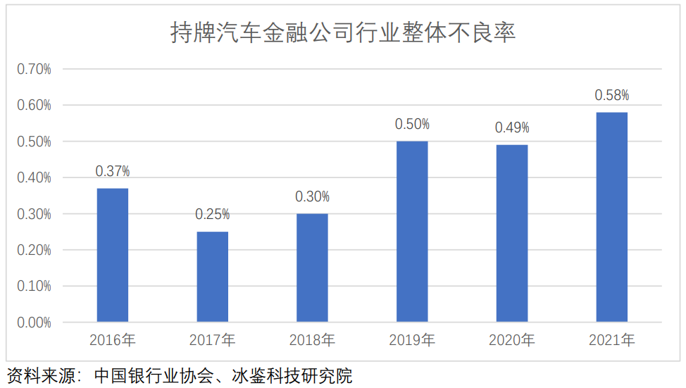 目前各家汽车金融公司不良率均保持较低水平,绝大部分不高于1%,风控较为严格。据银行业协会统计,疫情期间,汽车金融公司行业平均不良贷款率为0.58%,较2020年虽上升0.09个百分点,但仍远低于银行业金融机构平均水平。2021年,丰田汽车金融、吉致汽车金融、比亚迪汽车金融、梅赛德斯-奔驰汽车金融、广汽汇理汽车金融等公司不良率分别不超过0.2%,比大部分银行房贷不良率还要低很多。由此可知,汽车金融公司的风控策略是“低利率、低风险”。