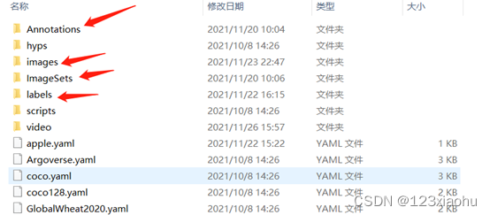 Images文件夹:用来存放原始的需要训练的数据集图片,图片格式为jpg格式。