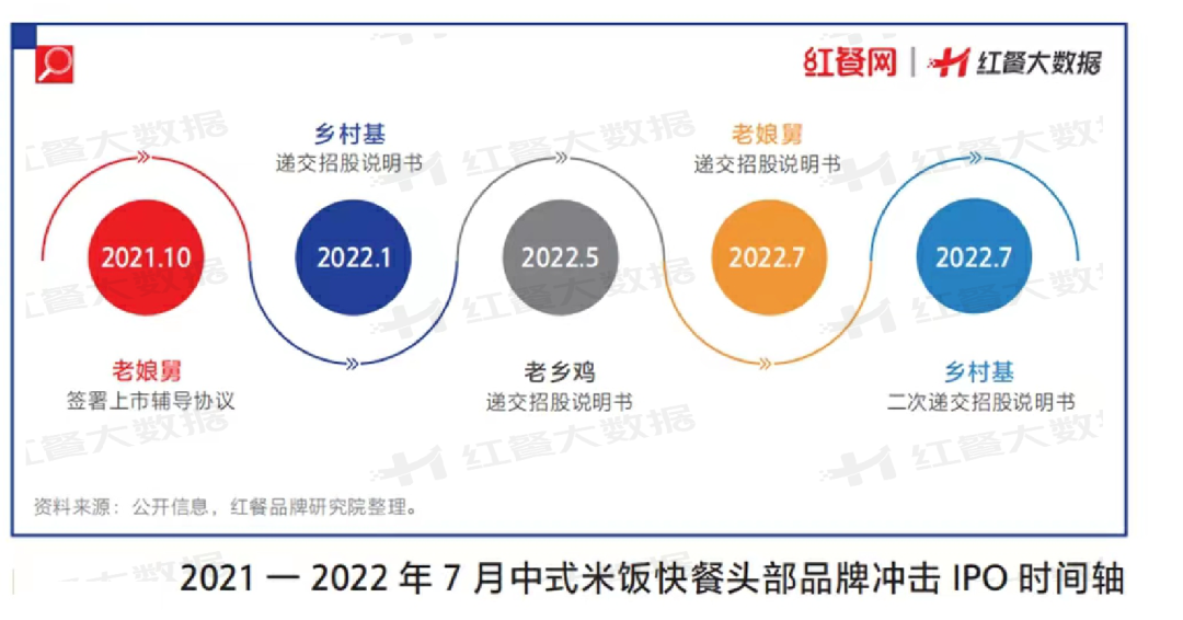 2022年1月,乡村基向港交所递交招股说明书,开启了IPO进程,并于2022年7月底再次递表;老乡鸡也于2022年5月向上交所递交招股说明书,拟于主板上市;老娘舅于2022年7月递交招股说明书,计划在国内A股主板上市。