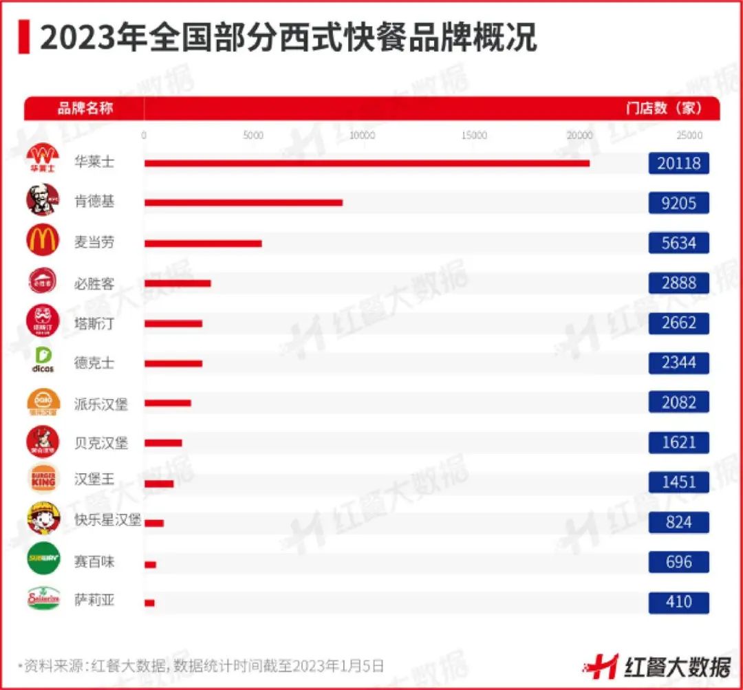 红餐大数据显示,2022年我国西式快餐市场规模约为2500亿元。为了快速抢占剩余的市场份额,西式快餐巨头不断提升在国内的开店速度。