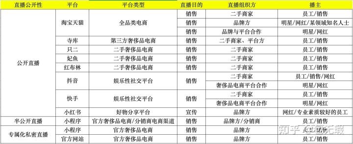 依据奢侈品公开化的程度,可分为:公开直播、非公开直播、专属化私密直播,不同方式针对人群不同,详可见下图。