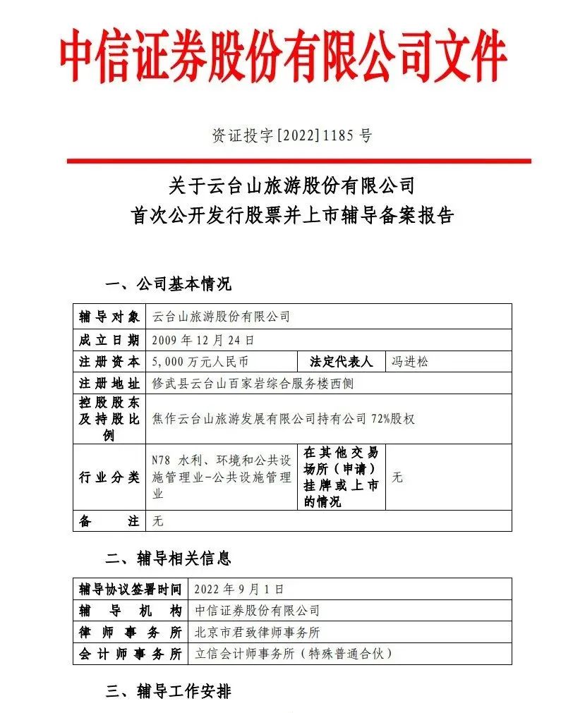 近日,云台山旅游股份有限公司(以下简称“云台山旅游”)冲刺A股上市,目前已在河南证监局辅导备案。值得注意的是,其在2015年就曾公开谋求A股上市,后因主办券商原因导致首次上市计划搁浅。公开资料显示,云台山旅游成立于2009年12月,全面负责云台山风景区内的规划开发建设、运营管理、门票经营等业务。