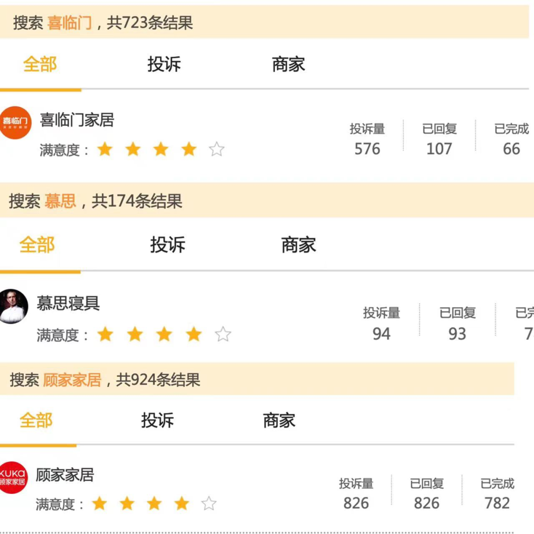 尽管慕思和喜临门极力推广价格更高的智能产品,但在黑猫投诉上,有关喜临门的投诉有722条,关于慕思的投诉有172条,多为关于质量问题以及售后服务问题的投诉。