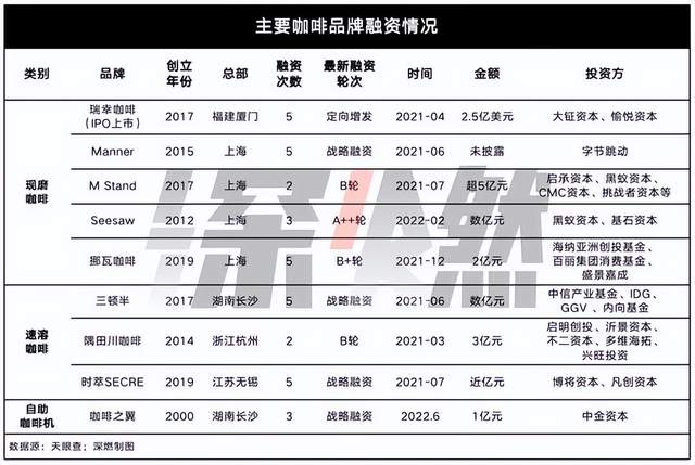 2020年-2021年,涌入咖啡赛道的热钱金额不及茶饮,2022年,一级市场传递给咖啡品牌的寒意比茶饮更浓。
