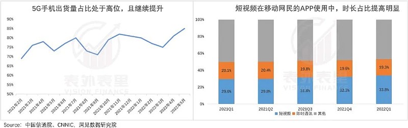 2021年开始,5G渗透率持续高增长,高速网络和智能设备的发展与普及,催化了视频内容的增长势头。