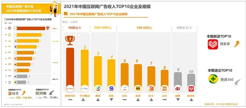 在本轮迭代中,字节取代腾讯,吃到了最大红利,2021年广告收入升级进入“千亿俱乐部”。