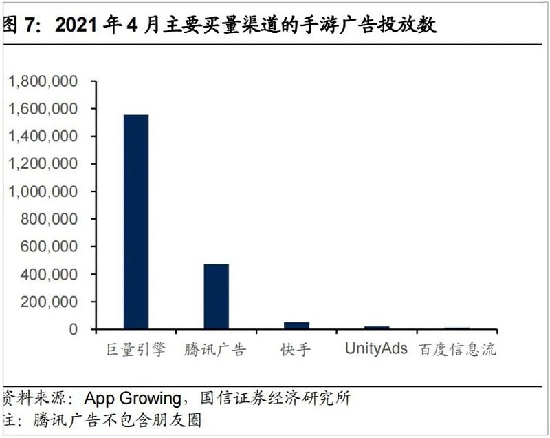 如下图,抖快等买量渠道和B站、TapTap等垂类渠道的崛起,在一定程度上弱化了腾讯游戏的渠道优势。