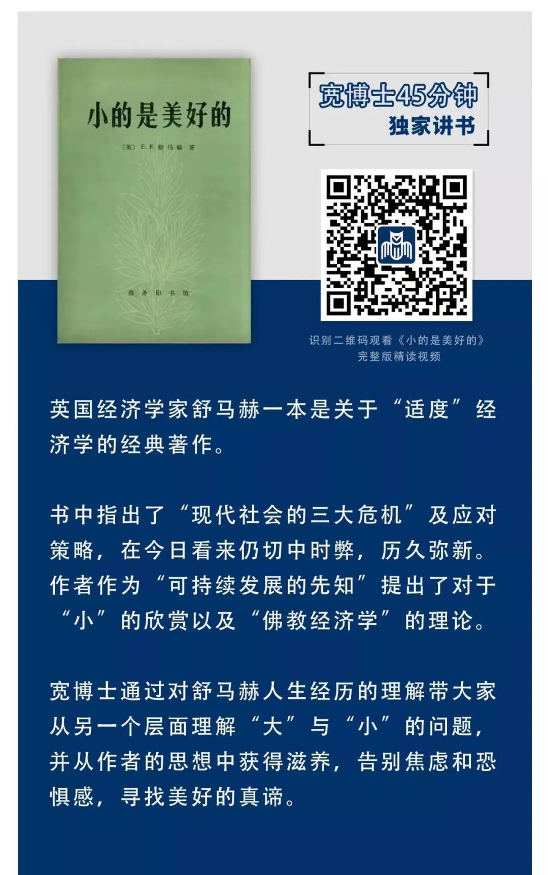 这是一本影响了战后德国的经济建设和发展的著作,20世纪60年代,资本主义处于经济增长的“黄金时期”,工厂林立,机器轰鸣,渐渐地,人类变得狂妄而自大起来,连理智的经济学家都断言,世界的生产问题已经解决,人类从此可以高枕无忧,但就在这一片喧嚣之中,有一个人保持着难得的冷静,他提出了对传统发展道路而言彻底颠覆的观点,舒马赫首先从道德和人性的角度去审视现代经济学的缺失:只关注经济,却忽略了道德;只注意工业生产,却剥夺了人性;只片面强调经济能让生活富裕,可是缺乏对心灵和精神的满足;光讲究物质经济增长,根本不考虑环境和资源。