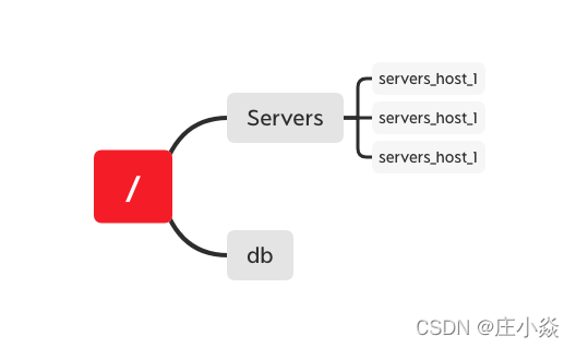 最后,通过统计临时节点的数量,来了解网络中服务器的运行情况。如下图所示,建立的 ZooKeeper 数据模型中 Severs 节点可以作为存储服务器列表的父节点。用于之后通过负载均衡算法在该列表中选择服务器。在它下面创建 servers_host1、servers_host2、servers_host3等临时节点来存储集群中的服务器运行状态信息。