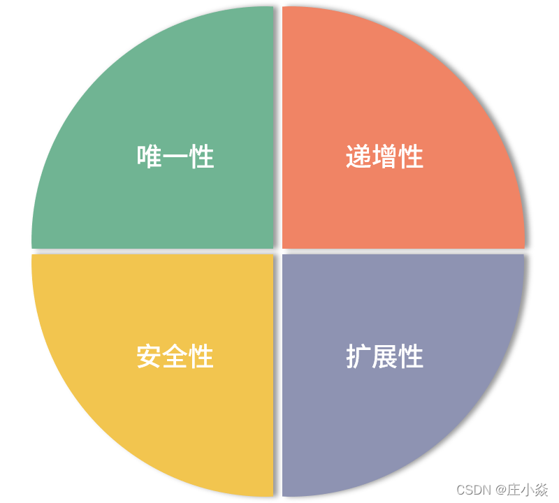 唯一性:ID 编码作为标记分布式系统重要资源的标识符,在整个分布式系统环境下,生成的 ID 编码应该具有全局唯一的特性。如果产生两个重复的 ID 编码,就无法通过 ID 编码准确找到对应的资源,这也是一个 ID 编码最基本的要求。