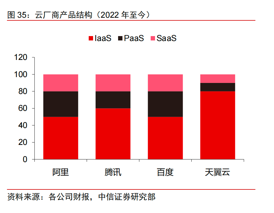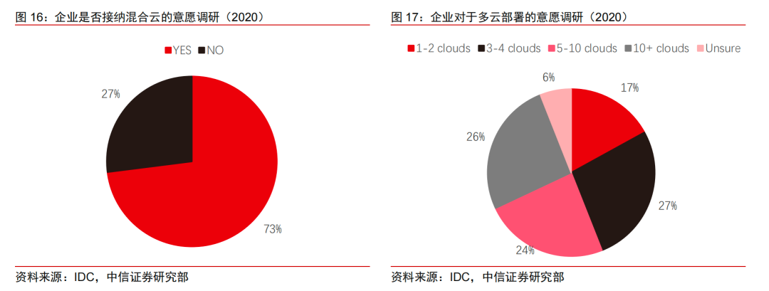 中信证券在一份研报中就指出,经过前期的高速发展与扩张后,互联网在国内云计算中的占比开始逐步回落。在IaaS与PaaS中的比重从2018年的接近50%回落至2020年的40%左右。
