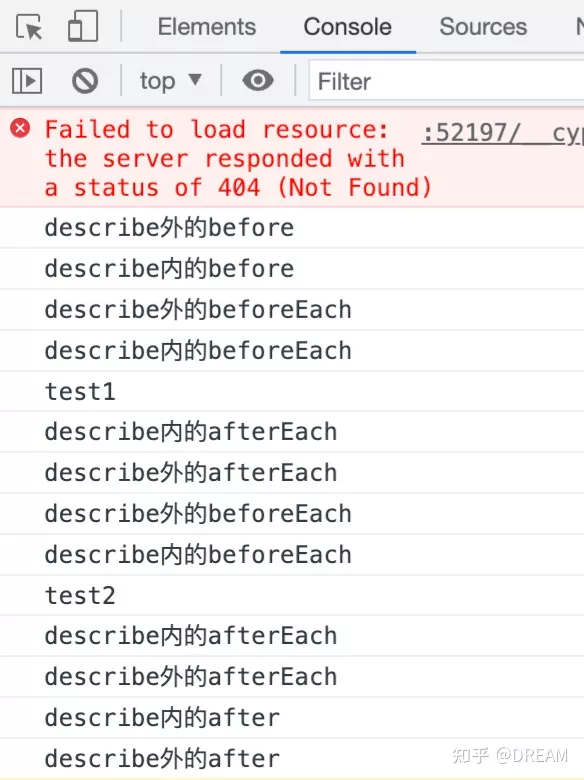 -> beforeEach() -> test1() -> afterEach() // describe()内的钩子函数与测试函数