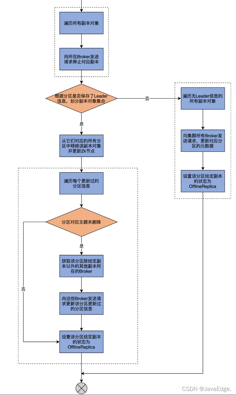- 若副本所在Broker关闭或不能正常工作,副本要从OnlineReplica变更为OfflineReplica。