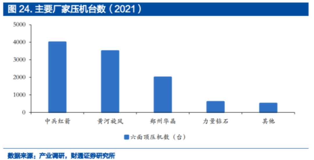 培育钻石主要厂商的头部效应较强,因为限制扩产的核心因素在于压机的数量,压机核心零部件铰链梁又受限于产能。郑州华晶背后虽然有着黯然退市的豫金刚石,其压机数量仍然较可观。券商观点认为,积极扩张产能的培育钻石头部企业,仍将享受行业上升期红利。