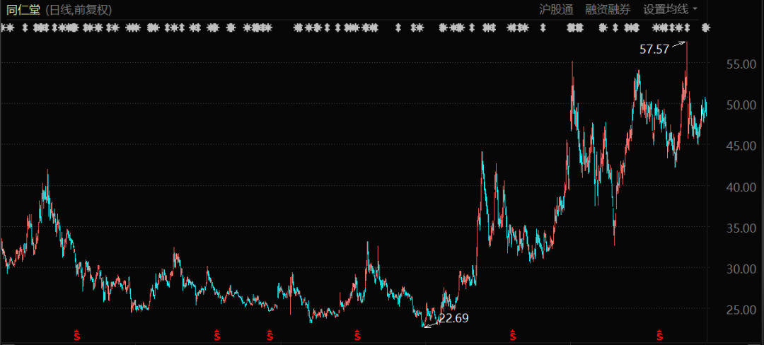 随后同仁堂的股价便一路上涨,至今涨幅已高达150%,冯柳的收益可观。