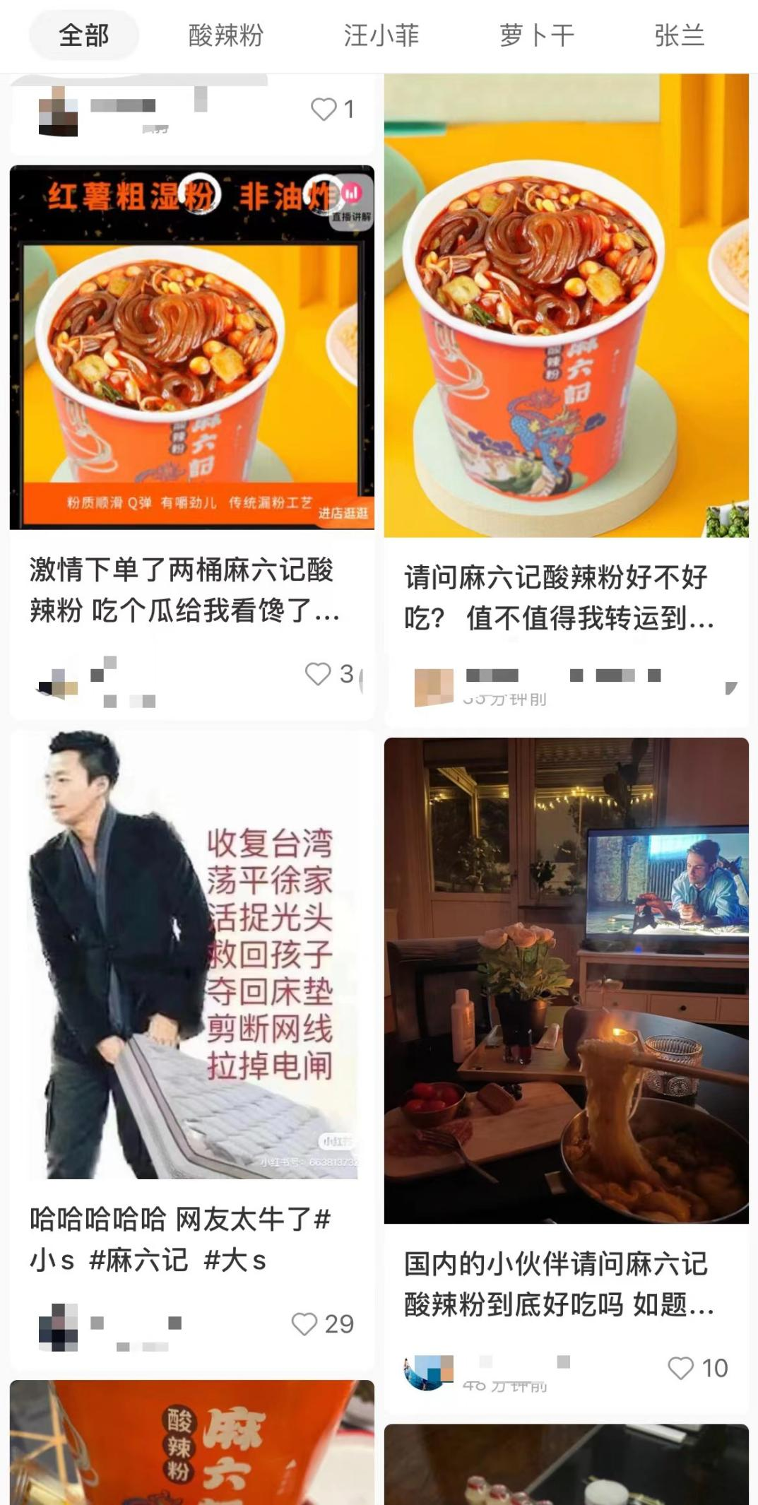 借着汪小菲的“发疯文学”热度,跑来吃瓜网友被张兰种草了自家的麻六记,酸辣粉、小旺肠、小黄鱼、重庆小面等等产品纷纷出圈。