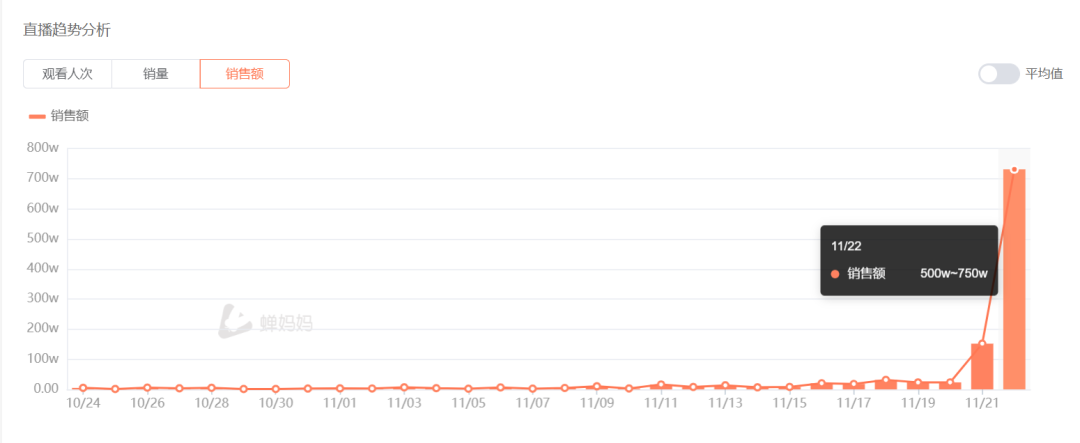 同样努力的还有麻六记直播间,11月21日,一场11个小时的直播,斩获超100万的GMV,当天还涨了1.3万粉丝。昨天也是从早上10点20时,一直播到凌晨3点,共计17个小时,成功斩获500万+GMV。和11月20日10万的营业额相比,翻了50倍。