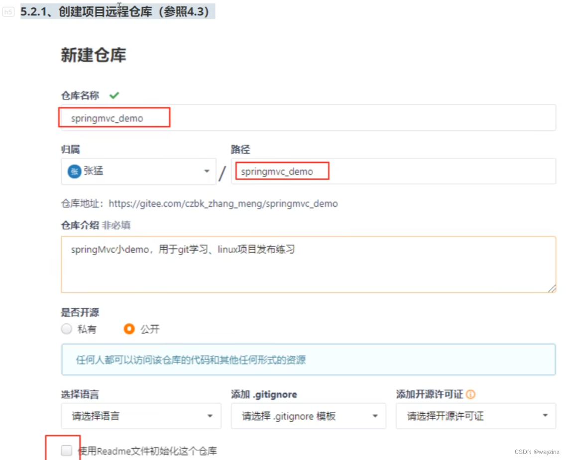 场景:本地已经有一个项目,但是并不是git项目,我们需要将这个放到码云的仓库里,和其他开发人员一起写作开发。