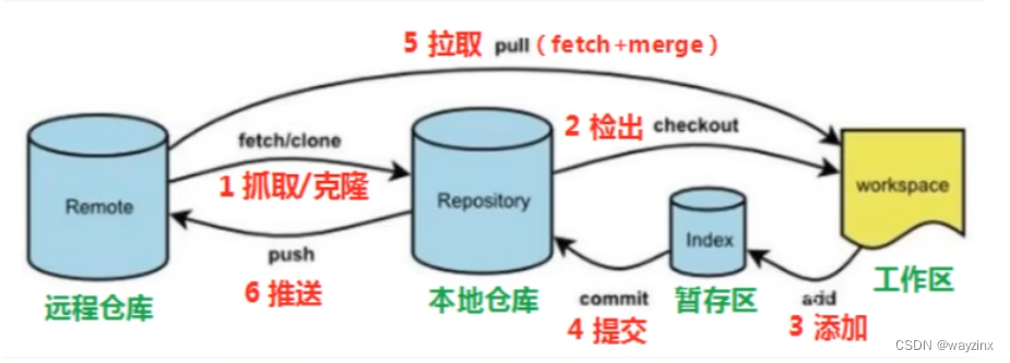 - 拉取指令就是将远端仓库的修改拉到本地并自动进行合并,等同于fetch+merge