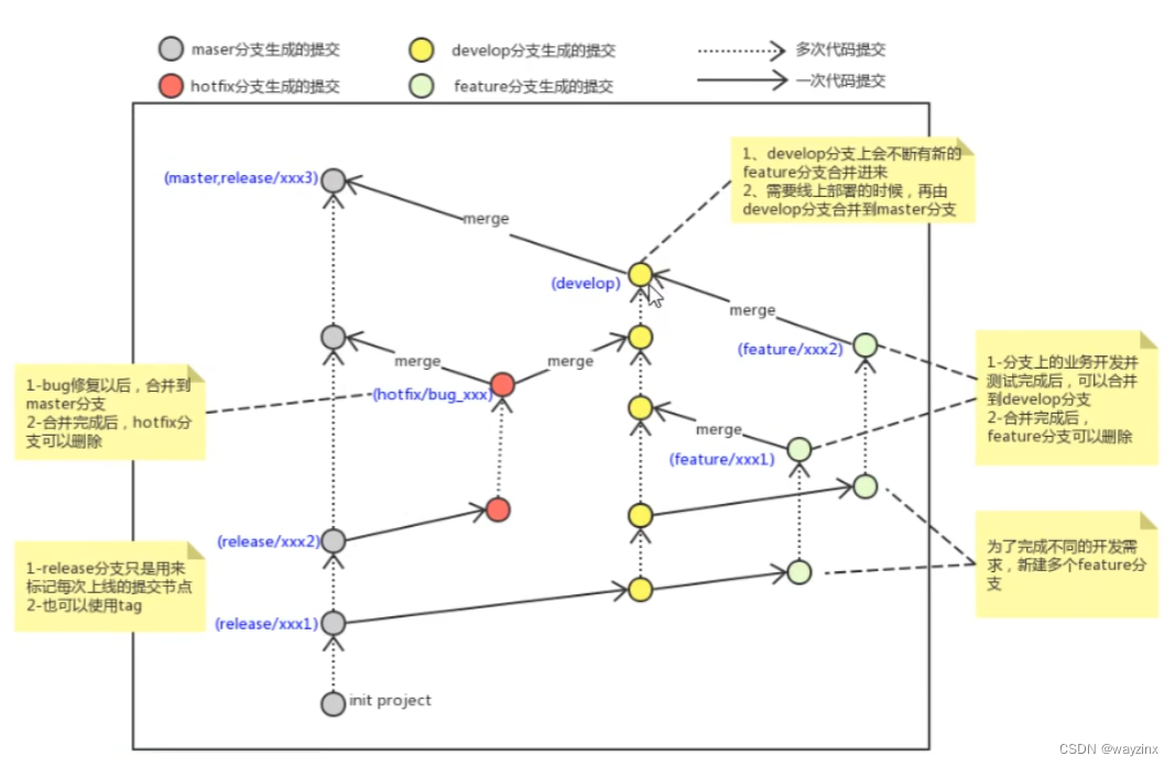 还有一些其他分支,在此不再详述,例如test分支(用于代码测试)、pre分支(预上线分支)等等。