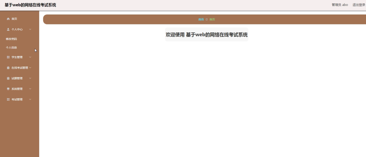 管理员登录系统后,可以对首页、个人中心、学生管理、在线考试管理、试题管理、系统管理、考试管理等功能进行相应操作,如图5-7所示。