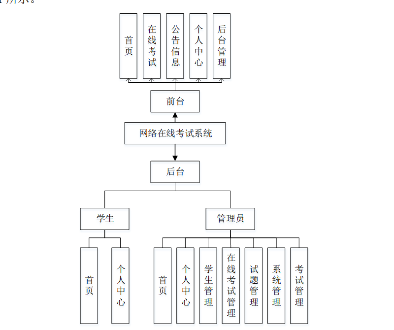 网络在线考试系统主要有两类用户。分别是管理员和学生,详细规划如图4-1所示。
