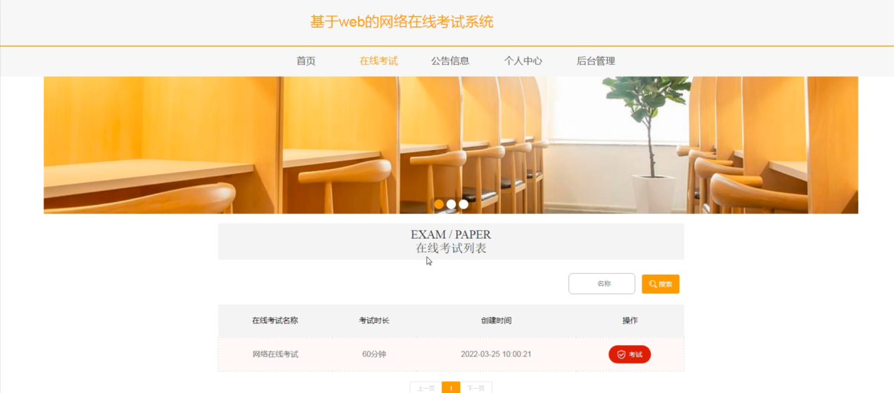 网络在线考试系统;在系统首页可以查看首页、在线考试、公告信息、个人中心、后台管理等内容进行详细操作,如图5-3所示。
