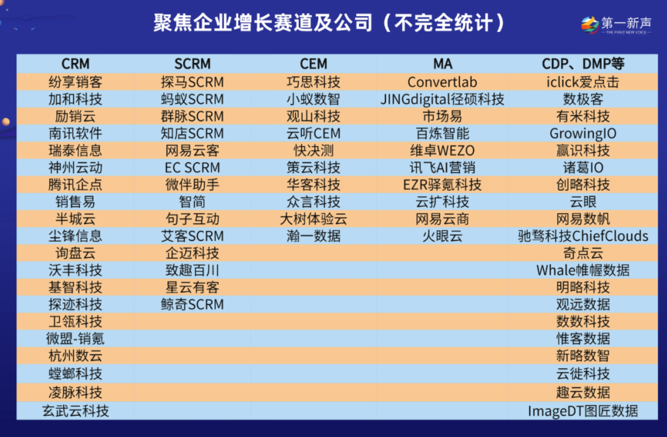 在工具或系统选择上,国内聚焦通企业增长的赛道有 CRM\SCRM\DMP\CDP\MA,到底该如何选择呢?