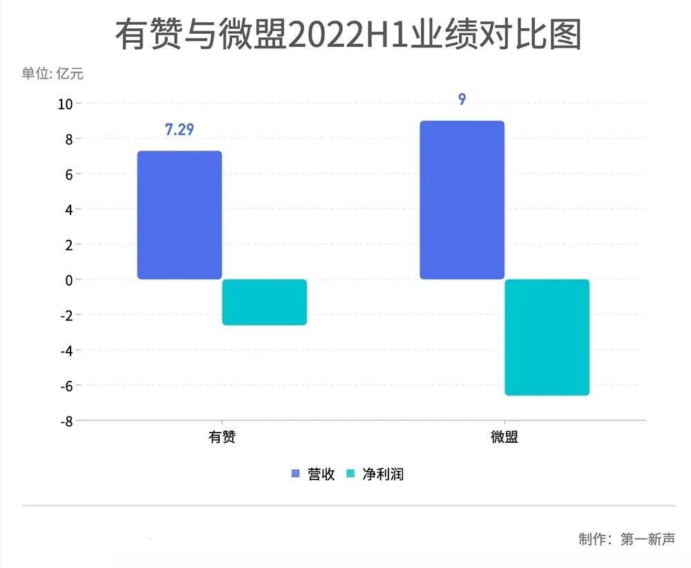 例如作为国内SaaS赛道头部玩家,有赞、微盟相继交出半年报。 有赞2022年上半年,公司总收入达7.29亿元,同比下滑9.23%,较上年同期降幅(2.5%)有所扩大。 上半年依然处于亏损状态,亏损达到4.82亿元,同比增加30.20%,但幅度已较2021年上半年的60.79%大幅收窄。