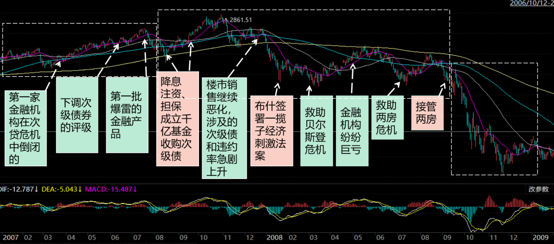 按照股市对危机的反应模式,我把2008年的金融危机分为三个阶段:次贷危机阶段、金融危机阶段和黑天鹅阶段,这三个阶段分别代表了重大金融危机的某一个特点。