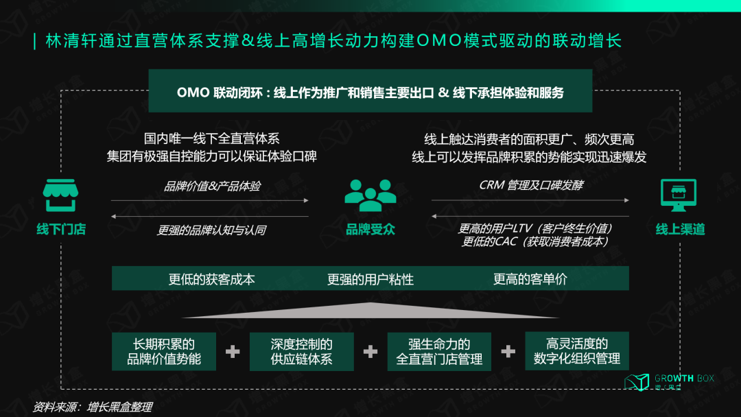从微信体系延伸至整个生意大盘,可以更清晰地理解林清轩未来的战略布局:建立一个OMO模式驱动的联动增长闭环,线上作为推广和销售主要出口,线下承担体验和服务。