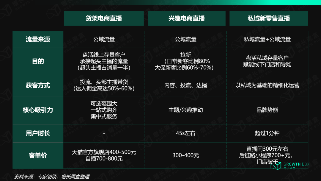 当然,不同平台对于品牌来说都有着独特的价值。我们整理了林清轩在货架电商直播、兴趣电商直播和私域直播的信息进行对比: