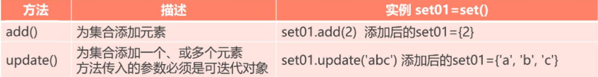 2)for循环 for x in 集合: → 迭代获取集合中的每一个元素 例:for x in{1,2,3}:print x 返回 1 2 3