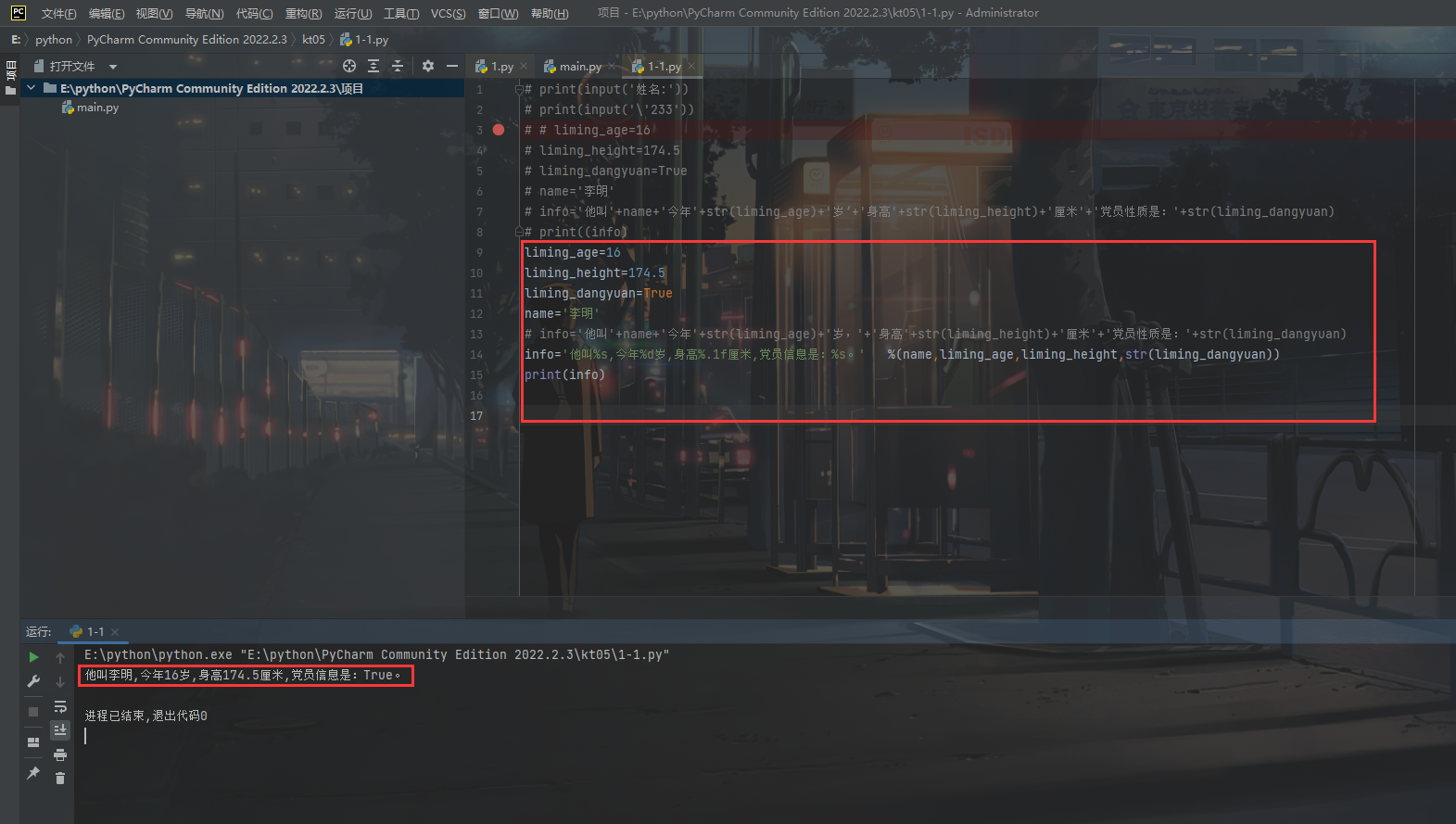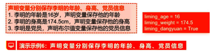 例子:声明变量分别保存李明的年龄、身高、党员信息