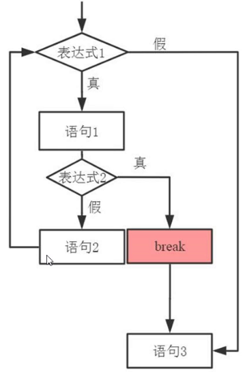 1)当执行条件为真时,执行break将会结束当前循环(如果上一层还有循环,会继续上层循环)