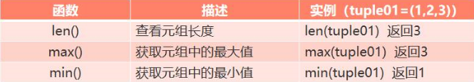 2)for循环 for x in 元组: →迭代获取元组中的每一个元素 例:for x in (1,2,3):