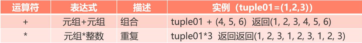 1)成员运算符 in x in 元组 →查看元素是否存在于列表中 例:3 in (1,2,3)返回True