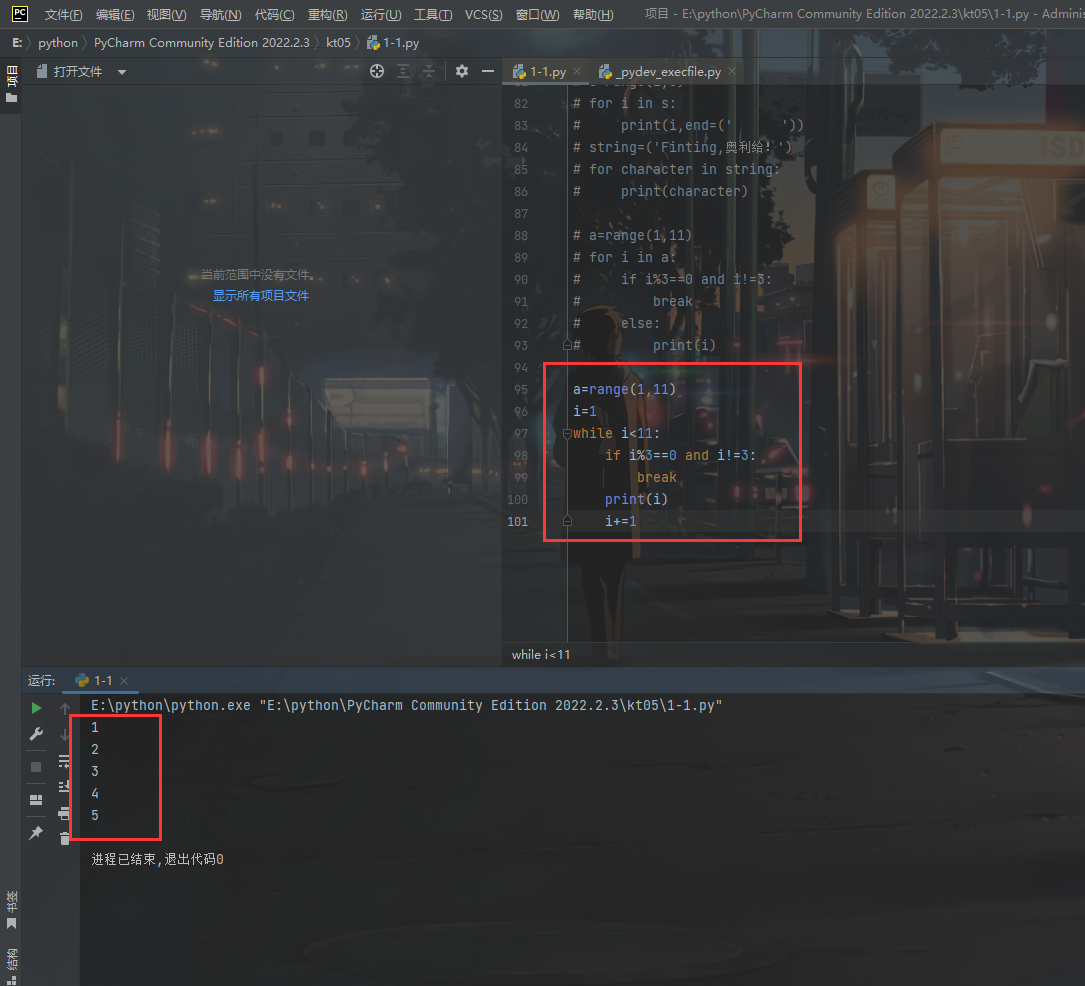 当while循环中执行了跳转语句break,将不执行else代码块的内容